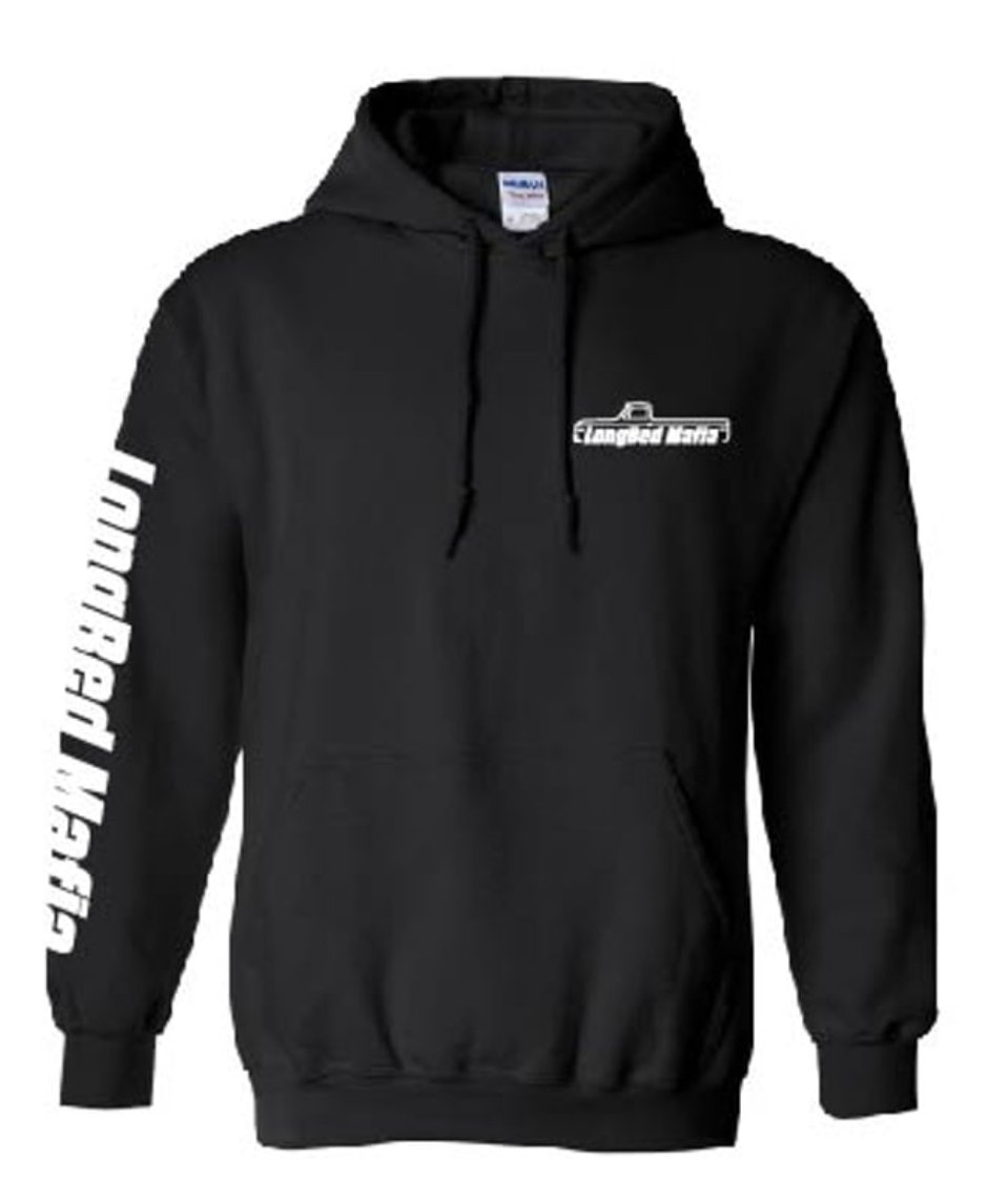 Solid black hoodies with LBM logo on front and LongBed Mafia on the sleeve.
